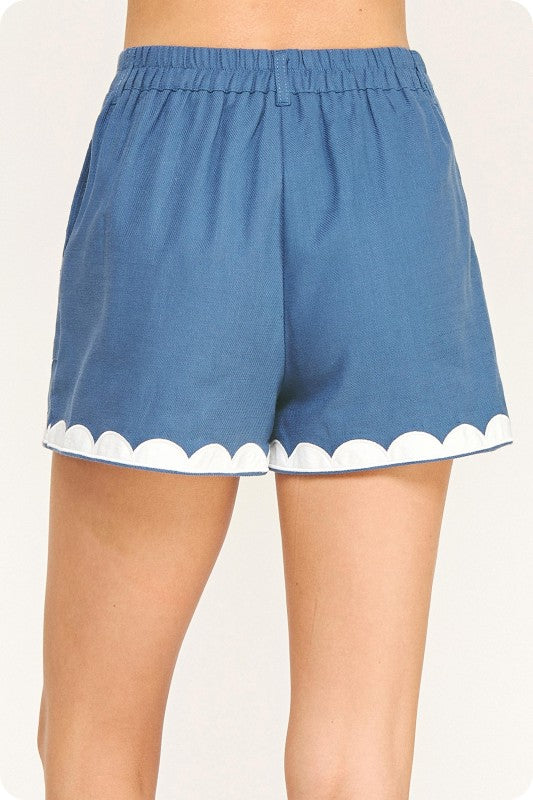Blue Contrast Embroidery Shorts