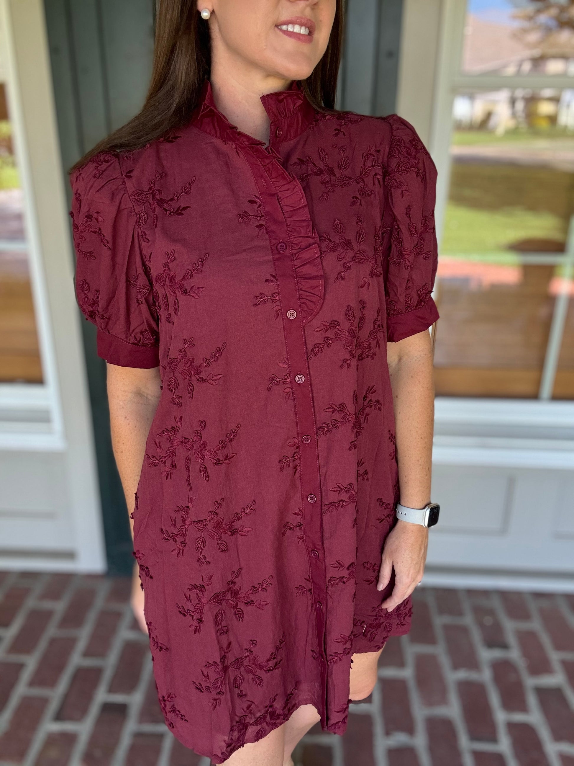 Elevate your wardrobe with the Burgundy Floral Ruffle Neck Dress, designed to blend timeless elegance with a fresh, feminine touch. Its rich burgundy hue and delicate floral pattern create a captivating look, while the ruffle neckline adds a subtle flair that enhances your natural charm. Perfect for any occasion, this dress promises comfort and style, making it a versatile choice for day-to-night wear. Embrace effortless sophistication and make a lasting impression wherever you go.
