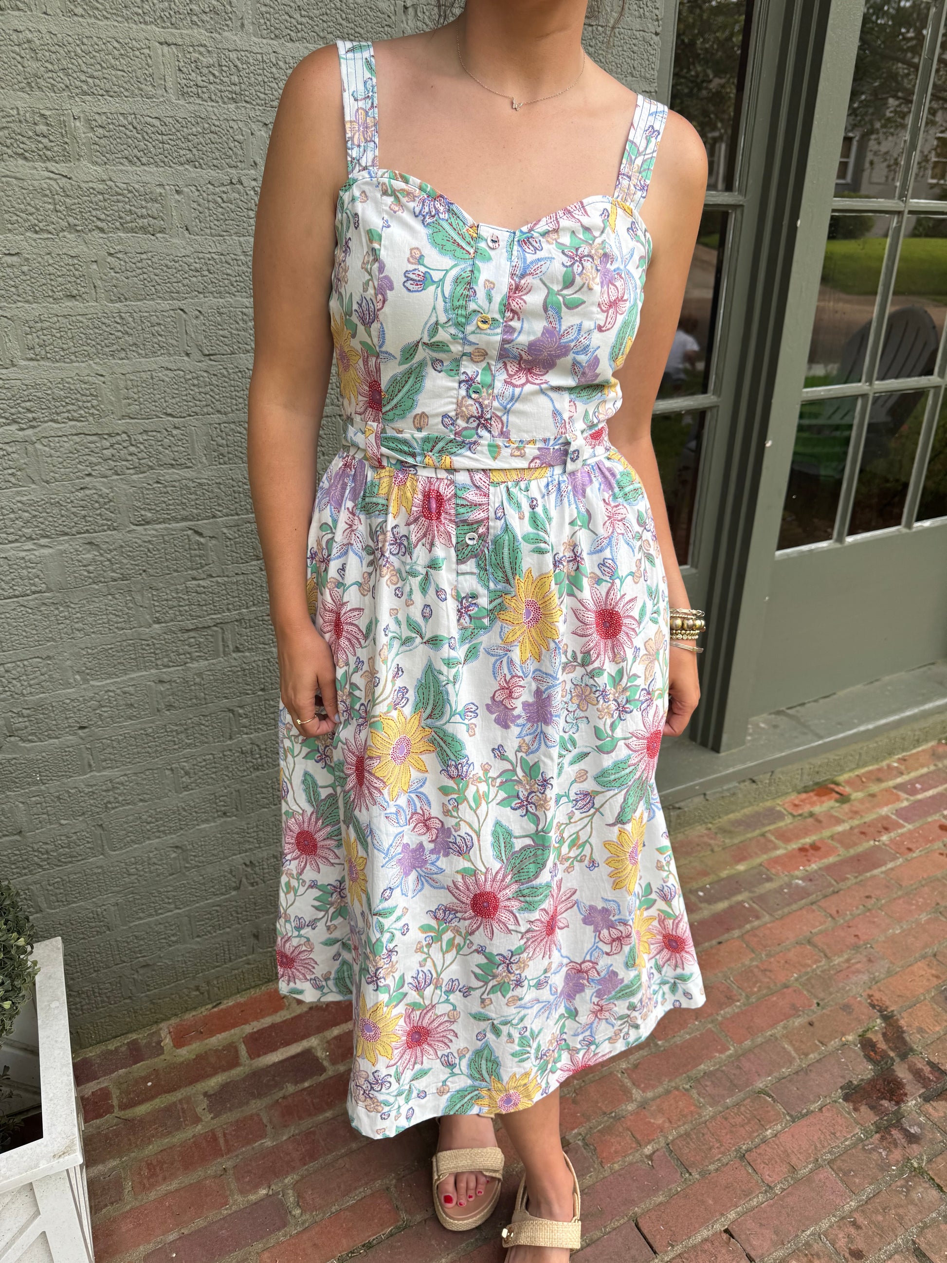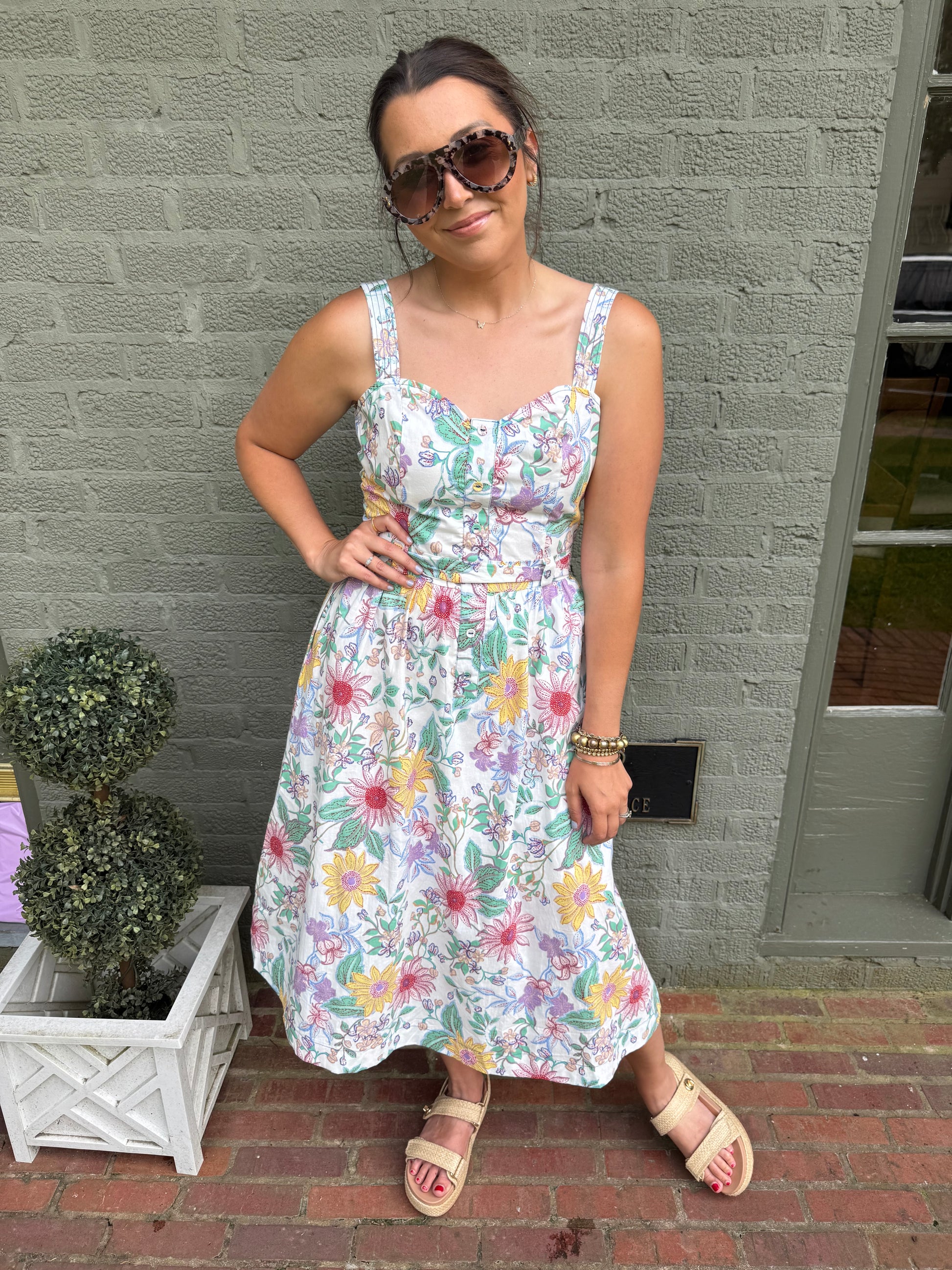 Indulge in the romantic and delicate elegance of our Ivory Multi Floral Button Down Midi Dress. With its timeless button-down design and charming floral print, this midi dress exudes femininity and grace. Perfect for any occasion, it will surely turn heads and make you feel confident and beautiful.