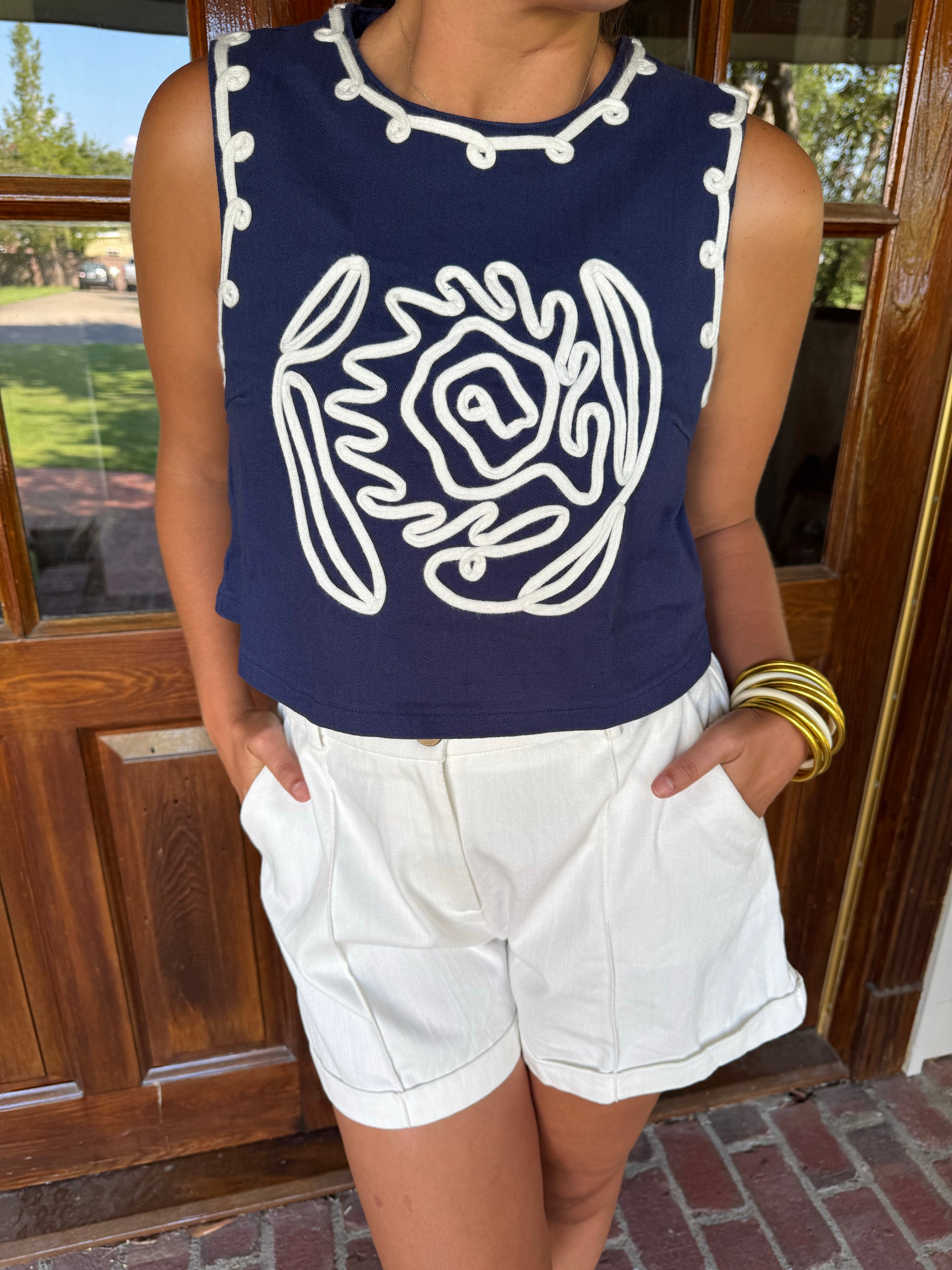 Elevate your wardrobe with the Navy Cord Detail Top, designed to blend classic style with modern comfort. Its rich navy hue and subtle cord detailing add a refined touch, making it perfect for both casual outings and polished looks. Crafted for a flattering fit, this top offers versatility and effortless elegance to enhance your everyday style.
