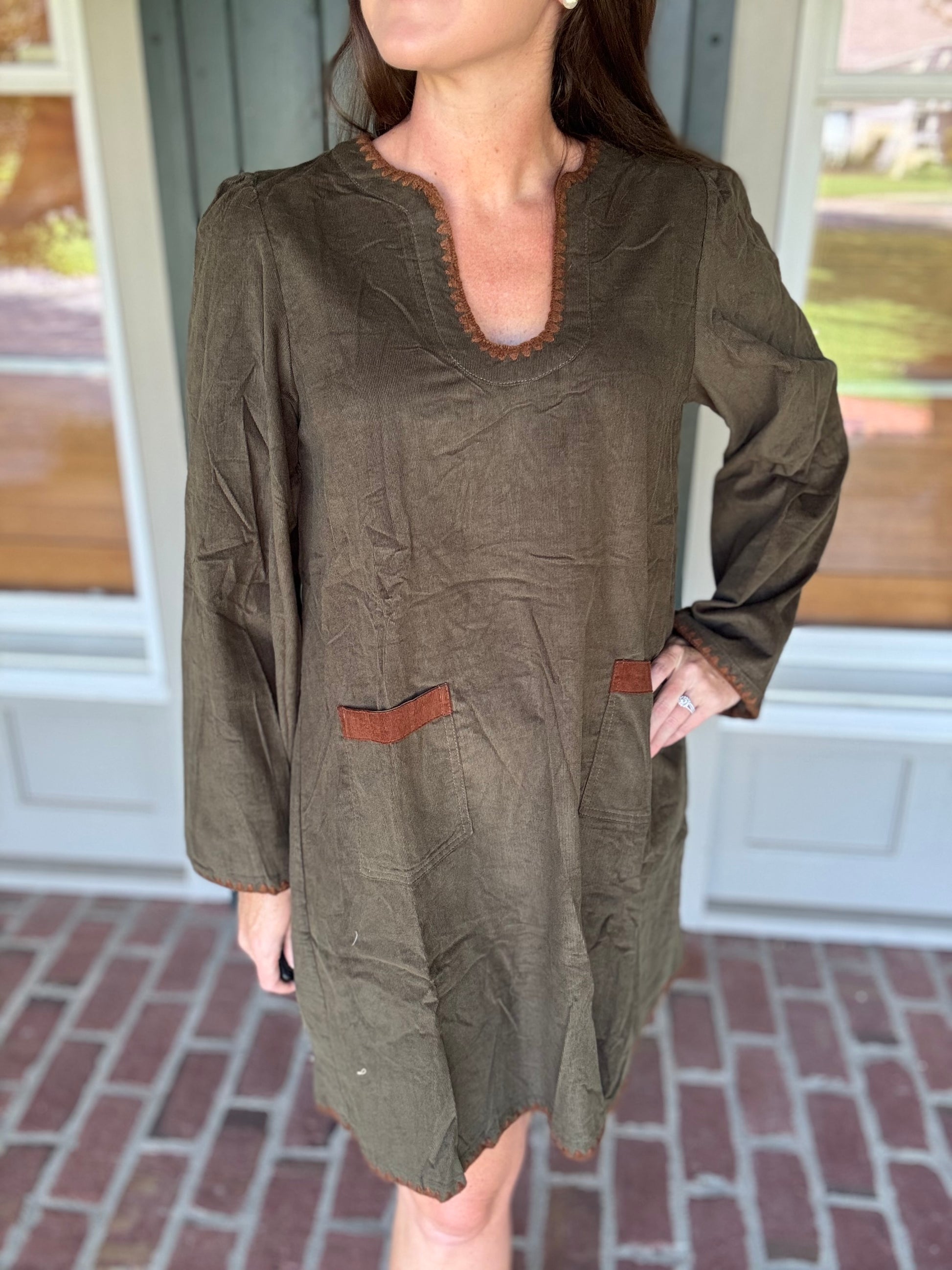 Elevate your wardrobe with the Olive Cord U-Neck Flare Sleeve Dress, designed to blend comfort and style effortlessly. Its soft olive cord fabric offers warmth and a flattering fit, while the elegant U-neck and dramatic flare sleeves add a unique, feminine touch. Perfect for day-to-night wear, this dress ensures you stand out with understated sophistication and ease.
