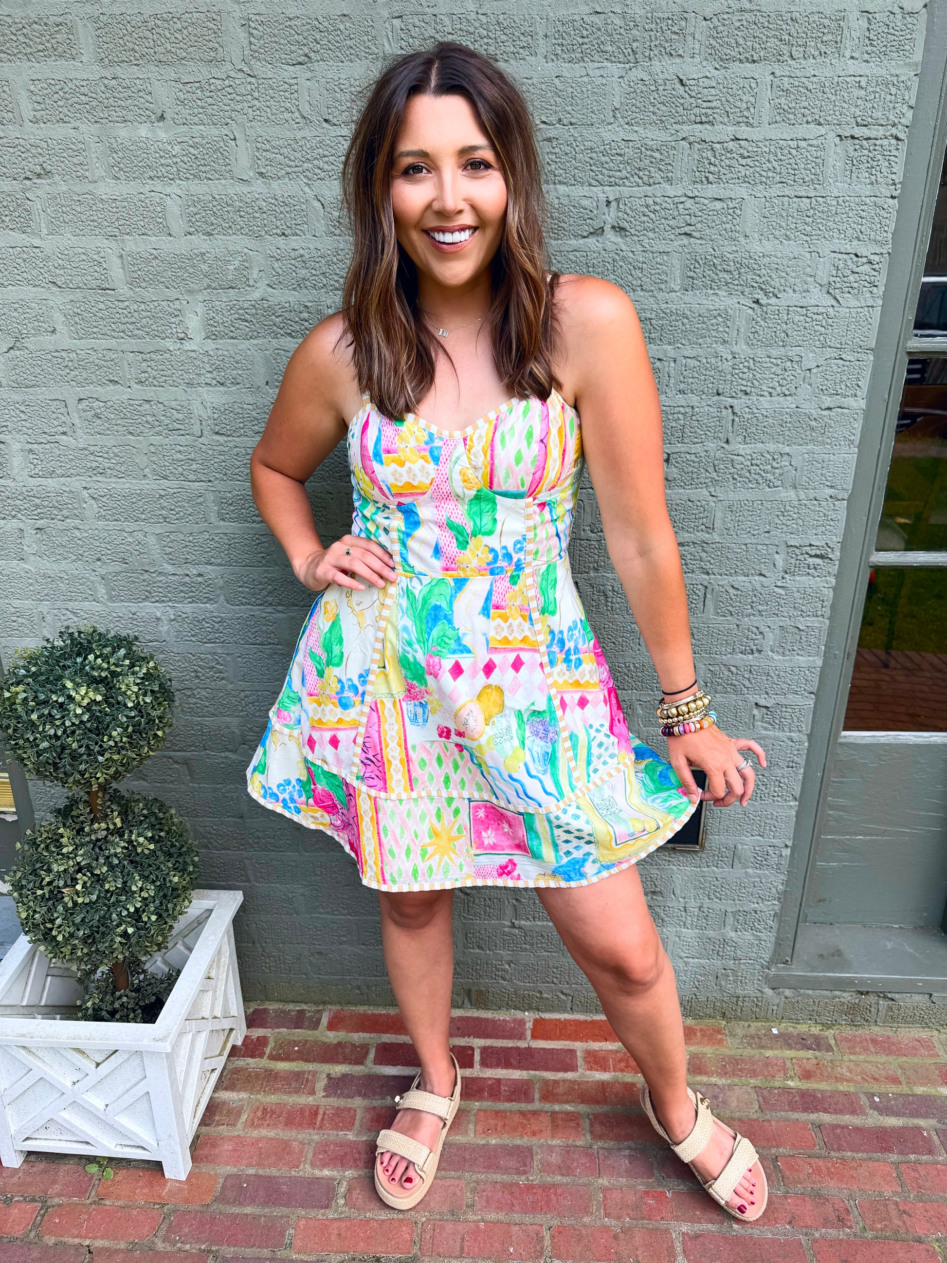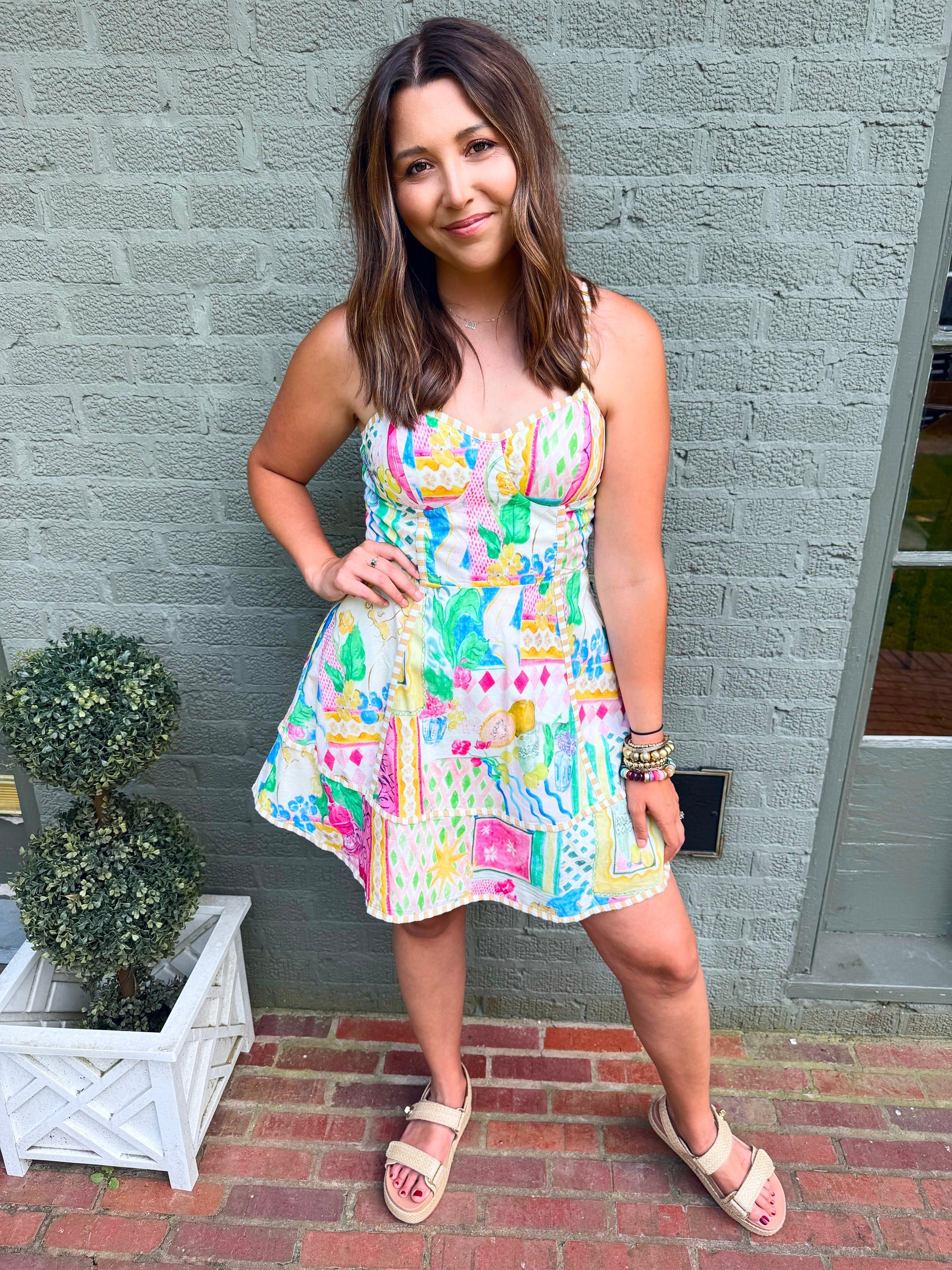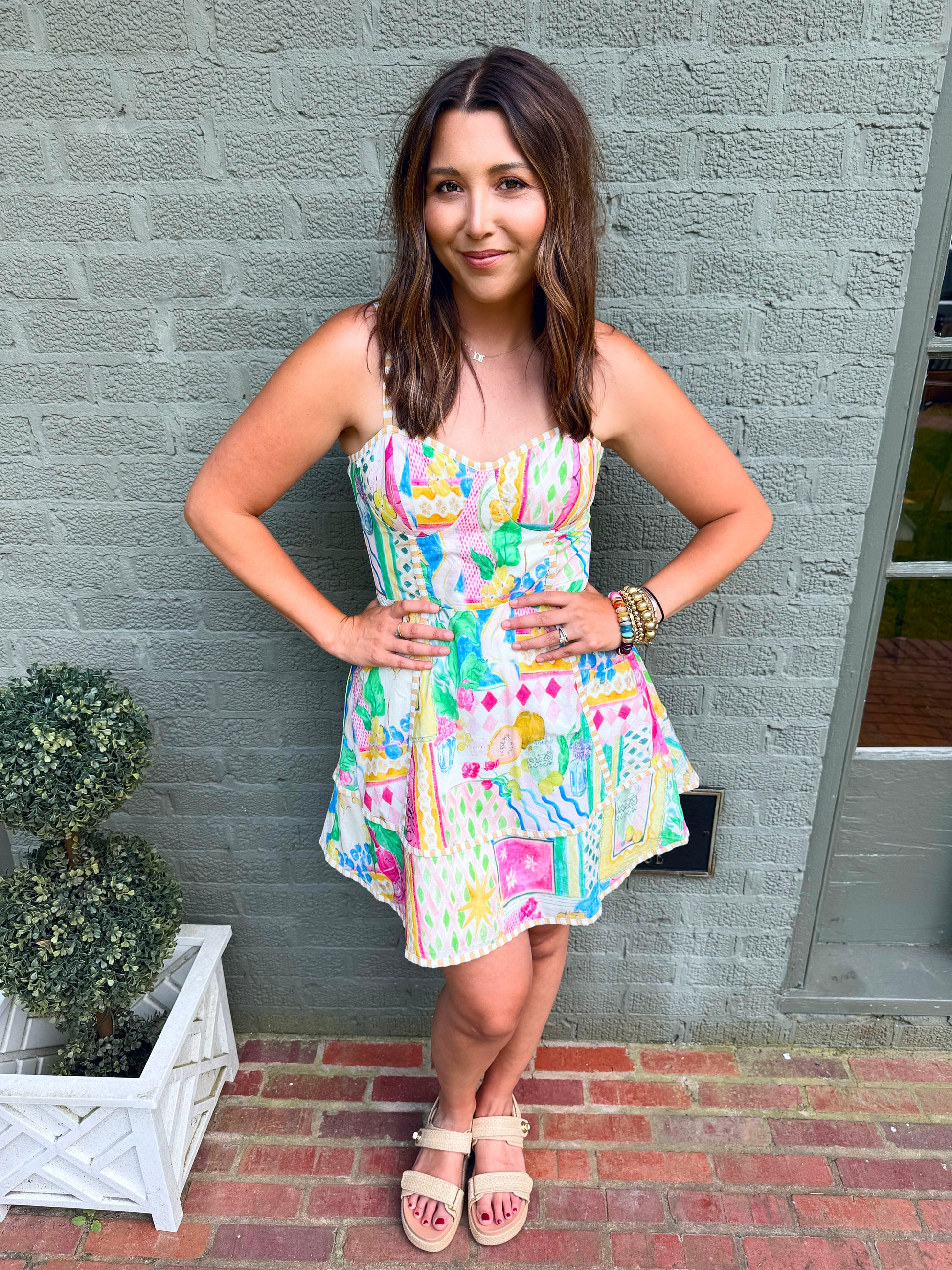 Experience the beauty and comfort of our Resort Print Flared Dress. Made with high-quality materials and a stunning resort-inspired print, this dress is perfect for any occasion. The flared silhouette and flowy fabric will make you feel confident and elegant. Elevate your wardrobe with this must-have dress!